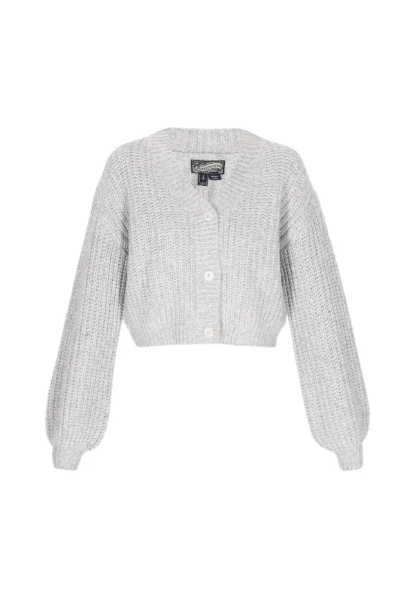Design: Pofmouwen, Geribd ceintuurtje, Geribbeld gebreid; Type sluiting: Knoopsluiting; Materiaal: Knitwear; Halstype: V-hals; Motief: Mélange; Extra's: Label patch/label flag, Op staal naden; Pasvorm: Normale pasvorm; Armlengte: Lange mouw; Lengte: Normale lengte