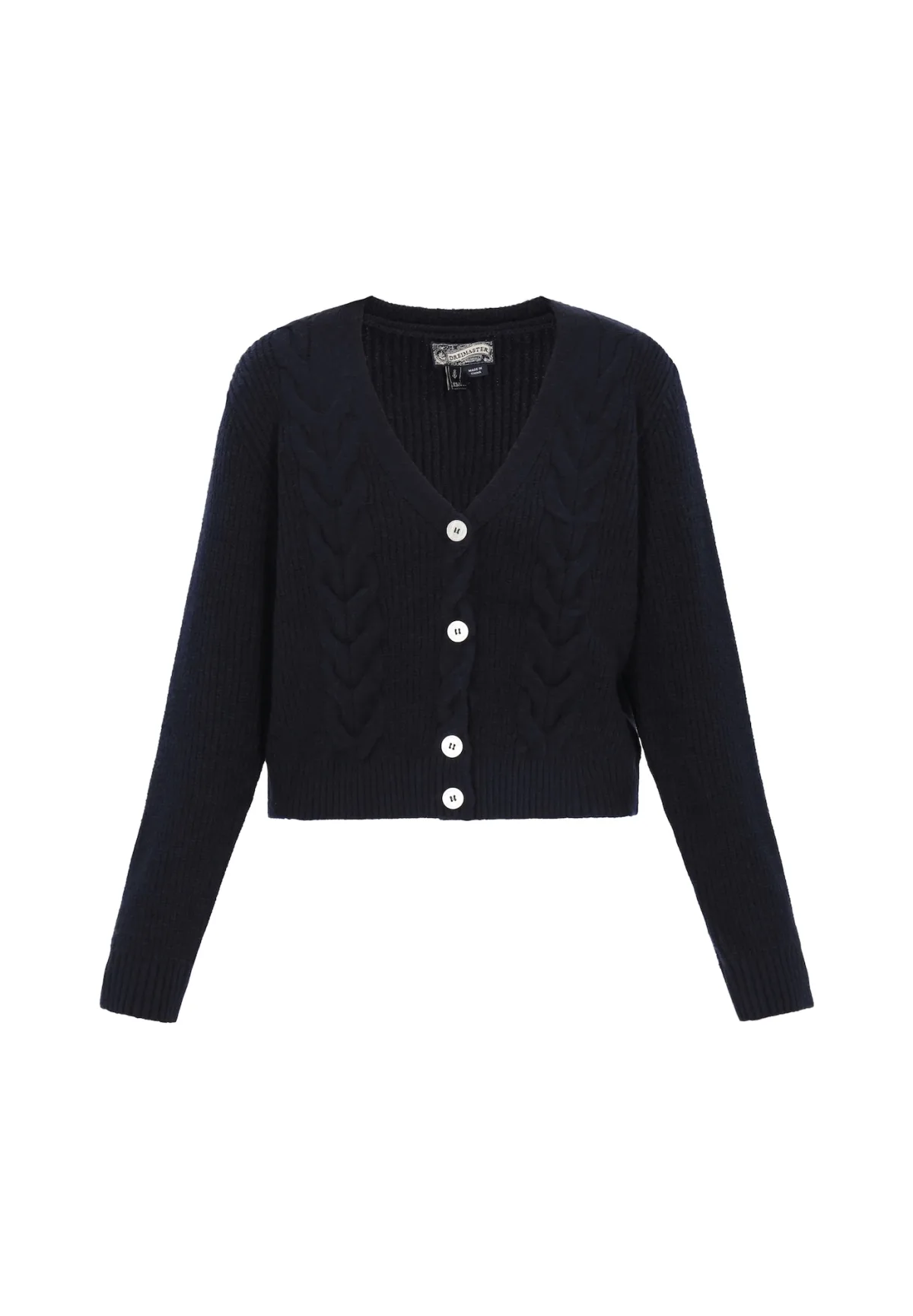 Design: Knop placket, Geribd ceintuurtje, Vlecht brei; Type sluiting: Knoopsluiting; Materiaal: Knitwear; Halstype: V-hals; Motief: Effen; Extra's: Voelt zacht aan; Pasvorm: Normale pasvorm; Armlengte: Lange mouw; Lengte: Normale lengte