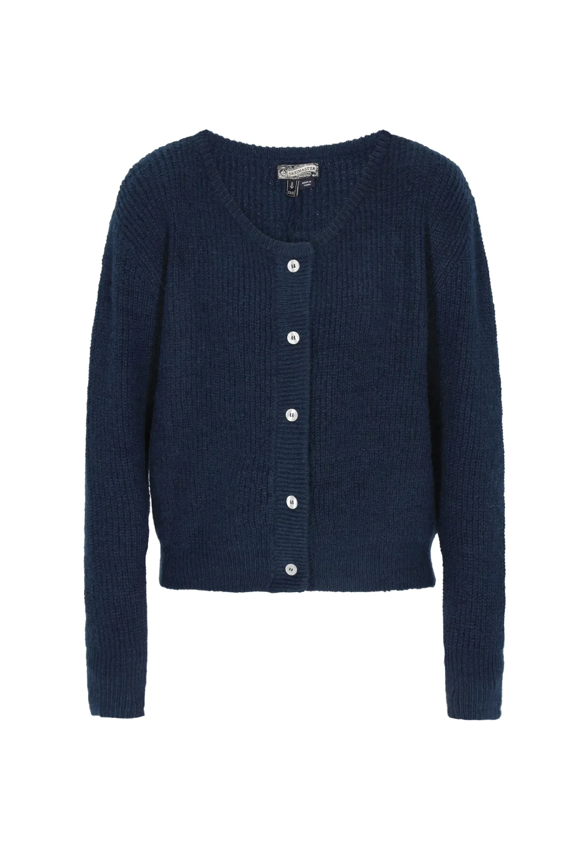 Design: Rechte zoom, Geribbeld gebreid; Type sluiting: Knoopsluiting; Materiaal: Knitwear; Halstype: Ronde hals; Motief: Effen; Extra's: Fully fashioned, Met textuur; Pasvorm: Losse pasvorm; Armlengte: Lange mouw; Lengte: Normale lengte