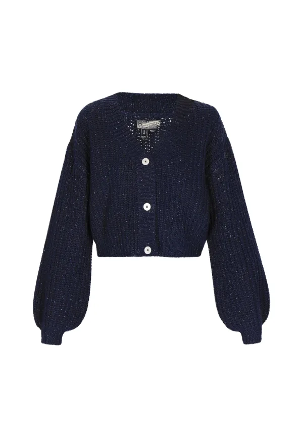 Design: Pofmouwen, Geribd ceintuurtje, Geribbeld gebreid; Type sluiting: Knoopsluiting; Materiaal: Knitwear; Halstype: V-hals; Motief: Mélange; Extra's: All-over patroon, Label patch/label flag, Op staal naden; Pasvorm: Normale pasvorm; Armlengte: Lange mouw; Lengte: Normale lengte