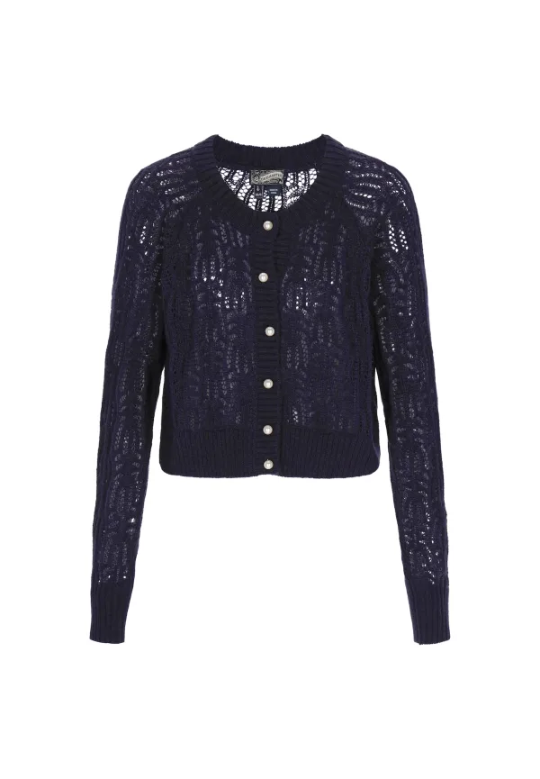 Design: Geribbelde kraag, Knop placket, Raglanmouwen, Geribd ceintuurtje; Type sluiting: Knoopsluiting; Materiaal: Knitwear; Halstype: Ronde hals; Motief: Effen; Details: Mesh; Extra's: Patroon gebreid, Met textuur, Voelt zacht aan; Pasvorm: Normale pasvorm; Armlengte: Lange mouw; Lengte: Korte pasvorm