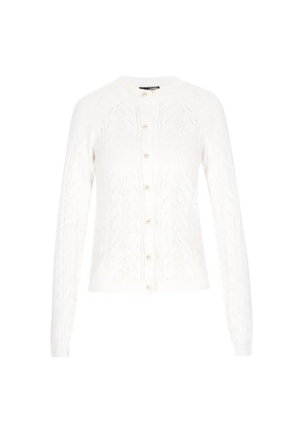 Design: Geribbelde kraag, Knop placket, Raglanmouwen, Geribd ceintuurtje; Type sluiting: Knoopsluiting; Materiaal: Knitwear; Halstype: Ronde hals; Motief: Effen; Details: Mesh; Extra's: Patroon gebreid, Parelmoer knoppen, Met textuur, Voelt zacht aan; Pasvorm: Normale pasvorm; Armlengte: Lange mouw; Lengte: Normale lengte