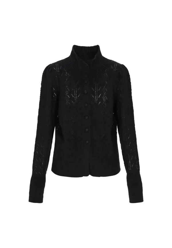 Design: Geribbelde kraag, Pofmouwen, Geribd ceintuurtje, Duimopening; Type sluiting: Knoopsluiting; Materiaal: Knitwear; Halstype: Opstaande kraag; Motief: Effen; Details: Gedrapeerd, Mesh; Extra's: Patroon gebreid, Met textuur, Voelt zacht aan, Overdekte knopen; Pasvorm: Normale pasvorm; Armlengte: Lange mouw; Lengte: Normale lengte