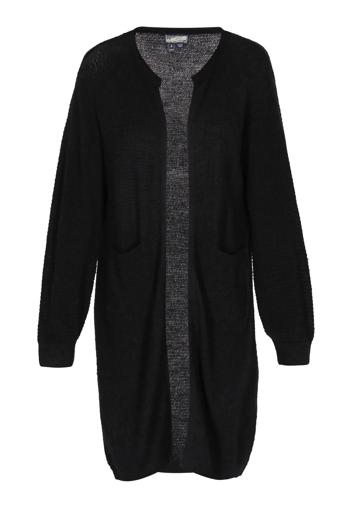 Design: Geribd ceintuurtje, Opgezette zakken; Materiaal: Knitwear; Motief: Effen; Extra's: Fully fashioned, Met textuur; Pasvorm: Losse pasvorm; Armlengte: Lange mouw; Lengte: Lange pasvorm