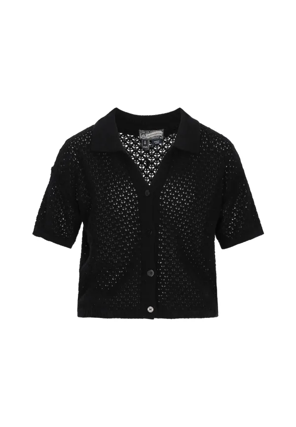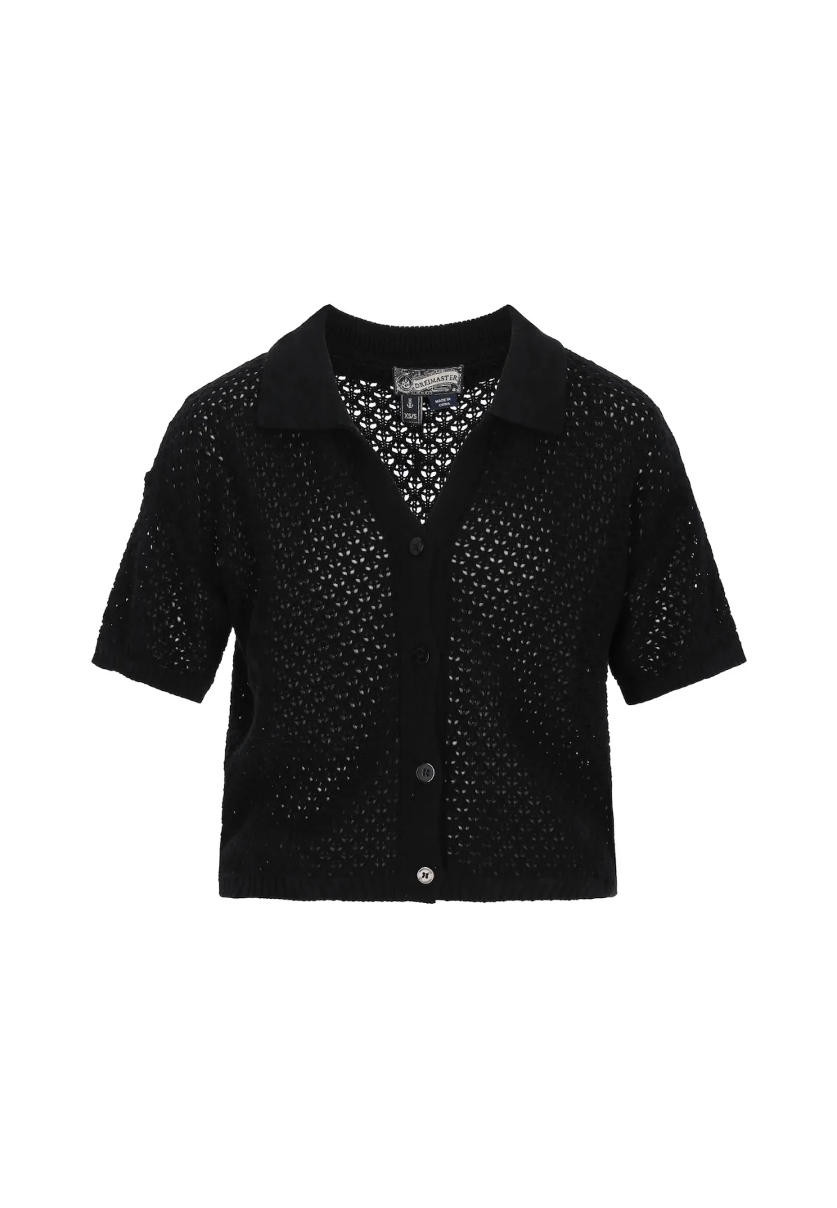 Design: Knop placket, Turn-down kraag; Type sluiting: Knoopsluiting; Materiaal: Knitwear; Halstype: V-hals; Motief: Effen; Details: Mesh; Extra's: Visnet brei, Met textuur; Pasvorm: Normale pasvorm; Armlengte: Kwartmouw; Lengte: Normale lengte