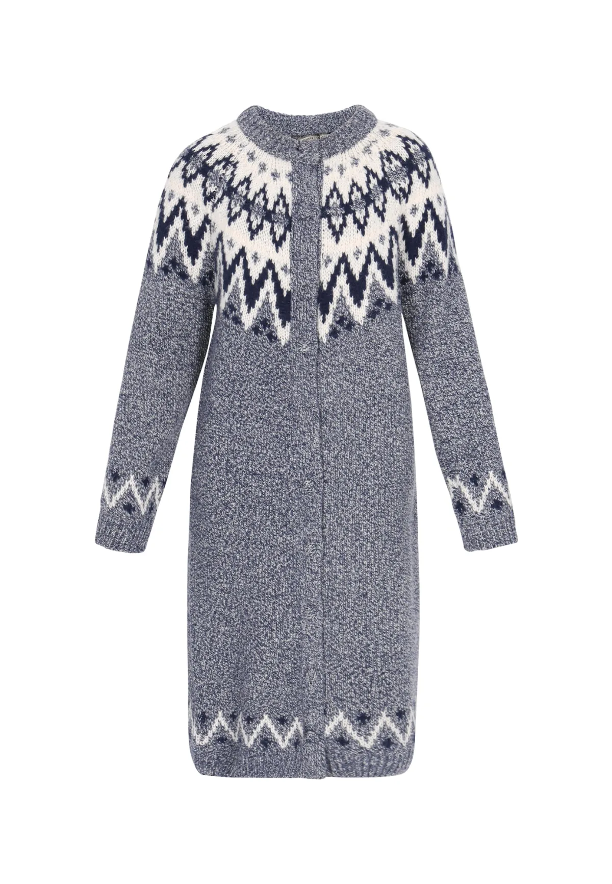 Design: Geribbelde kraag, Knop placket, Raglanmouwen, Geribd ceintuurtje; Type sluiting: Knoopsluiting; Materiaal: Knitwear; Halstype: Ronde hals; Motief: Winterse print; Extra's: Fully fashioned, Met textuur; Pasvorm: Normale pasvorm; Armlengte: Lange mouw; Lengte: Normale lengte