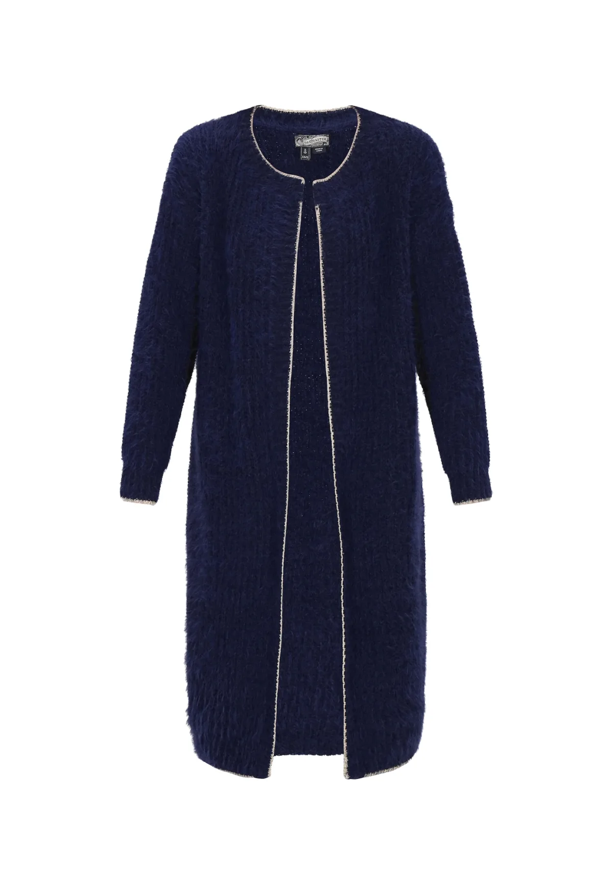 Design: Geribbelde kraag; Type sluiting: Open; Materiaal: Knitwear; Motief: Effen; Extra's: Glitterend, Met textuur; Pasvorm: Losse pasvorm; Armlengte: Lange mouw; Lengte: Normale lengte