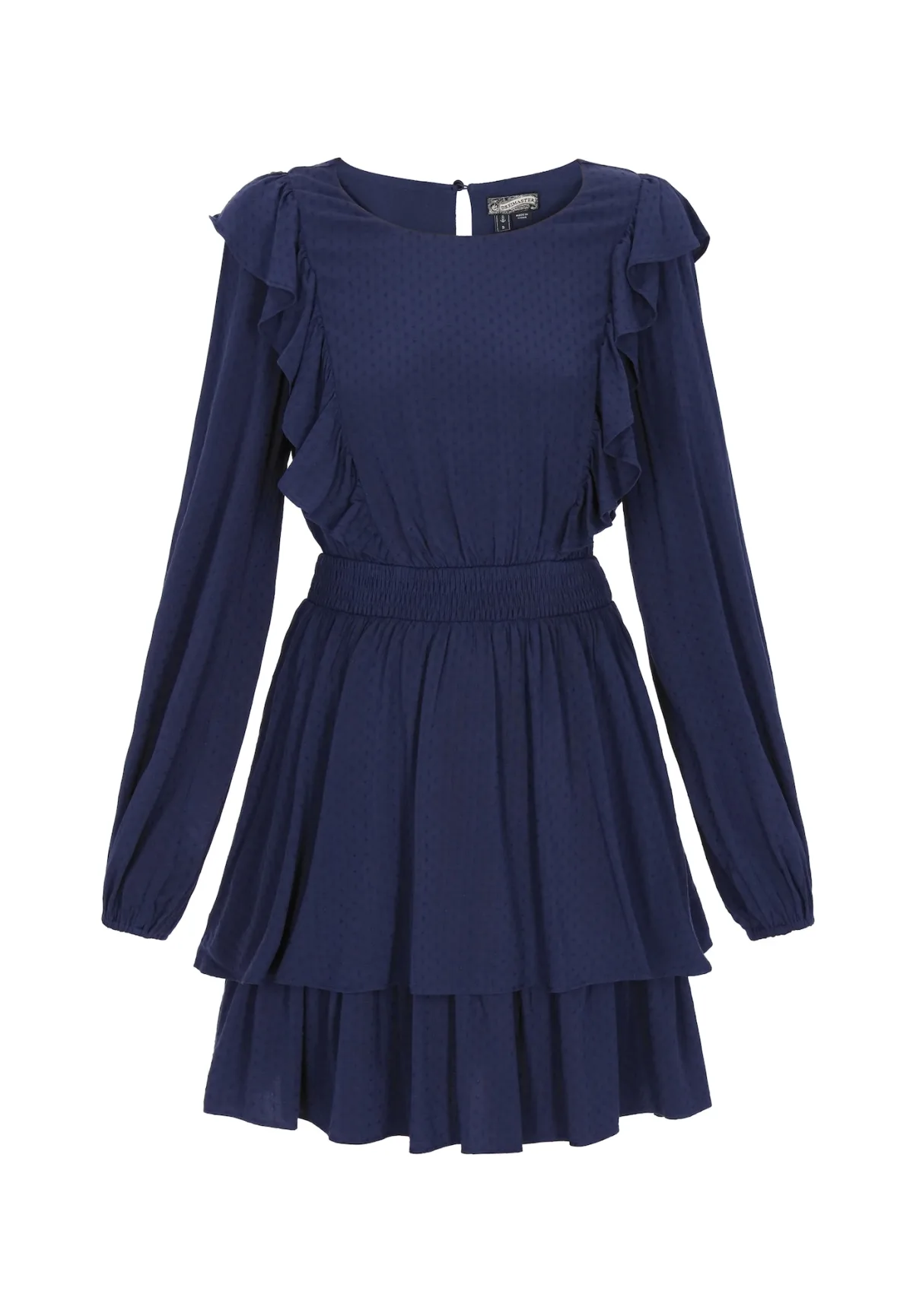Design: Elastische taille/zoom, Keyholesluiting; Type sluiting: Knoopsluiting; Materiaal: Viscose; Halstype: Ronde hals; Motief: Effen; Details: Cut-outs, Volant, Gedrapeerd; Extra's: Gladde stof, Met textuur; Lengte: Kort/mini; Snit: Getailleerd; Pasvorm: Normale pasvorm; Armlengte: Lange mouw