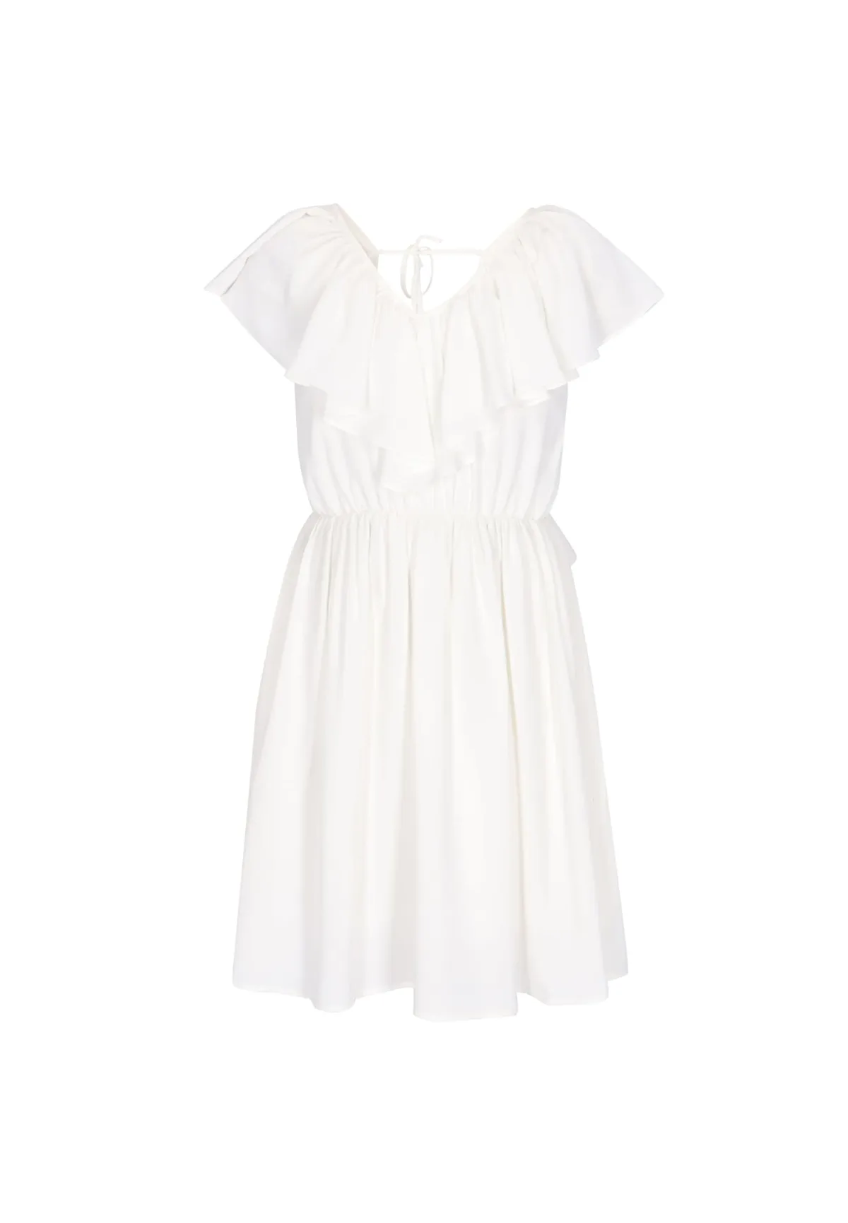Design: Gevoerde zoom/rand; Halstype: Ruches kraag; Motief: Effen; Details: Volant, Gedrapeerd; Extra's: Gladde stof; Lengte: Knielengte; Snit: Getailleerd; Pasvorm: Normale pasvorm; Armlengte: Kwartmouw
