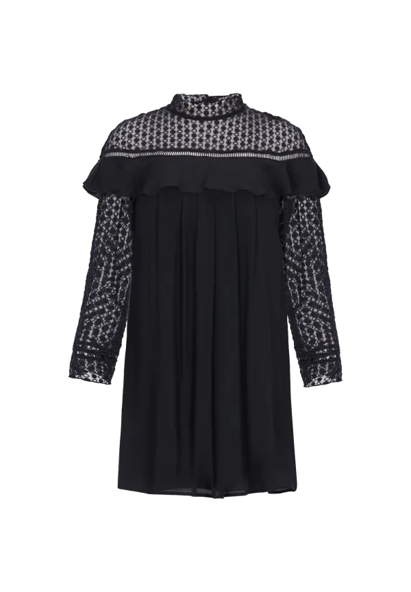 Design: Gevoerde zoom/rand; Type sluiting: Knoopsluiting; Materiaal: Viscose; Halstype: Opstaande kraag; Motief: Effen; Details: Ruches, Kant; Extra's: Licht transparant; Lengte: Kort/mini; Pasvorm: Normale pasvorm; Armlengte: Lange mouw