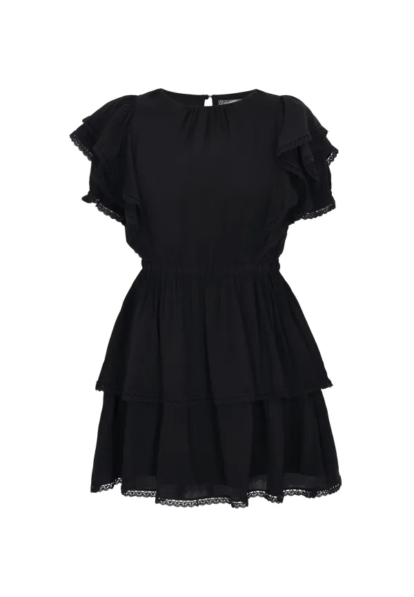Design: Elastische taille/zoom, Keyholesluiting, Knop sluiting; Type sluiting: Knoopsluiting; Materiaal: Katoen; Halstype: Ronde hals; Motief: Effen; Details: Cut-outs, Borduursels, Volant, Gedrapeerd; Extra's: Op staal naden; Lengte: Kort/mini; Snit: Getailleerd; Pasvorm: Normale pasvorm; Armlengte: Kwartmouw