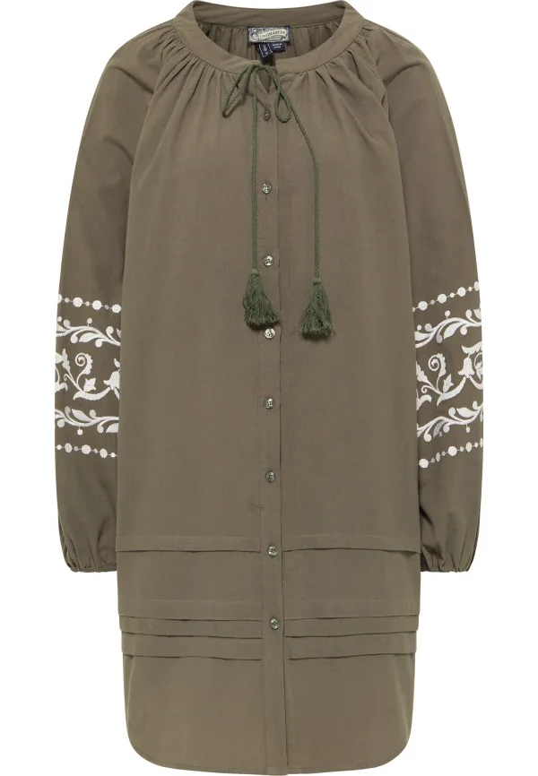 Deze knielange jurk van DreiMaster Vintage zit vol details en zomerse boho-charme. De hoogwaardige, licht gestructureerde katoenkwaliteit benadrukt de modieus losse oversized pasvorm en de volumineuze raglanmouwen, die dankzij het uitgebreide borduurwerk absolute blikvangers worden. De doorlopende knoopsluiting eindigt bij de afgeronde zoom, die door gelegde plooien losser wordt. Het casual ontwerp wordt gecompleteerd door het koord bij de halslijn, die met kwastjes is versierd.
