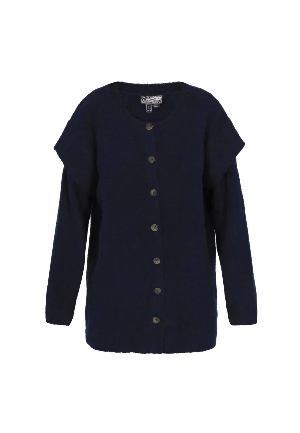 Design: Rechte zoom, Knop placket, Geribd ceintuurtje; Type sluiting: Knoopsluiting; Materiaal: Knitwear; Halstype: Ronde hals; Motief: Mélange; Extra's: Label plaatje, Fully fashioned, Voelt zacht aan; Pasvorm: Losse pasvorm; Armlengte: Lange mouw; Lengte: Lange pasvorm