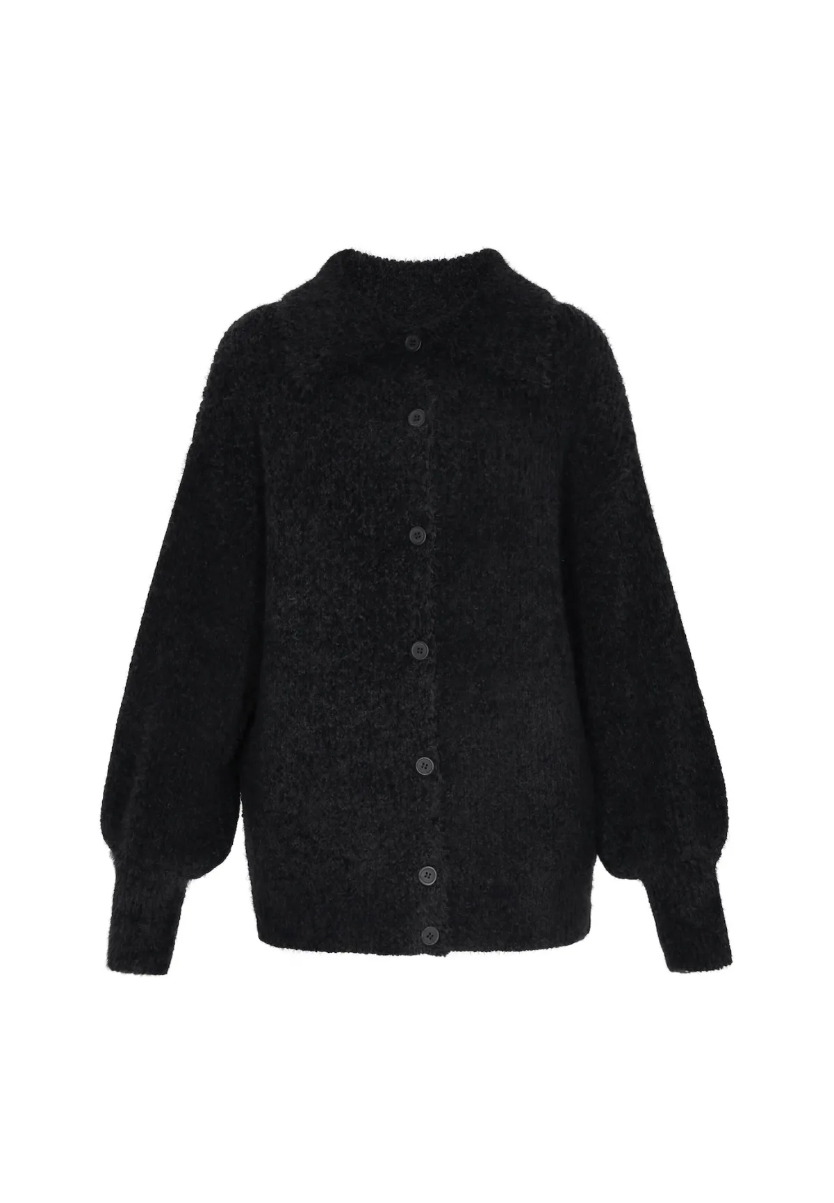Design: Geribbelde kraag, Knop placket, Geribd ceintuurtje; Type sluiting: Knoopsluiting; Materiaal: Knitwear; Motief: Effen; Extra's: Label plaatje, Fully fashioned, Voelt zacht aan; Pasvorm: Losse pasvorm; Armlengte: Lange mouw; Lengte: Normale lengte