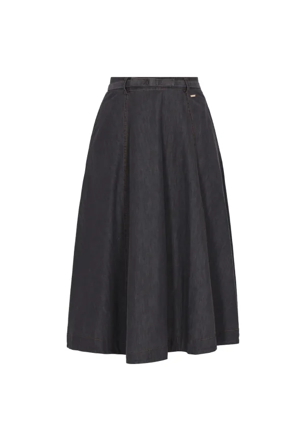 Design: Met riem, Zakken aan de zijkant; Type sluiting: Ritssluiting; Materiaal: Denim; Motief: Effen; Rokvorm: A-lijn rok; Details: Plooien; Extra's: Contrasterende naden, Gewassen effect; Lengte: 3/4 lengte; Pasvorm: Losse pasvorm; Taillehoogte: High waist