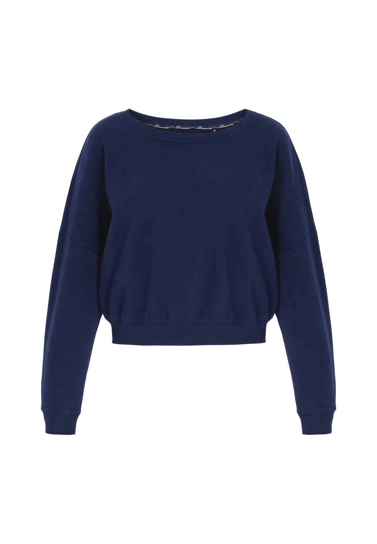 Design: Overcut schouder; Materiaal: Sweatstof; Halstype: Ronde hals; Motief: Effen; Details: Gedrapeerd; Extra's: Op staal naden, Voelt zacht aan; Pasvorm: Losse pasvorm; Armlengte: Lange mouw; Lengte: Korte pasvorm