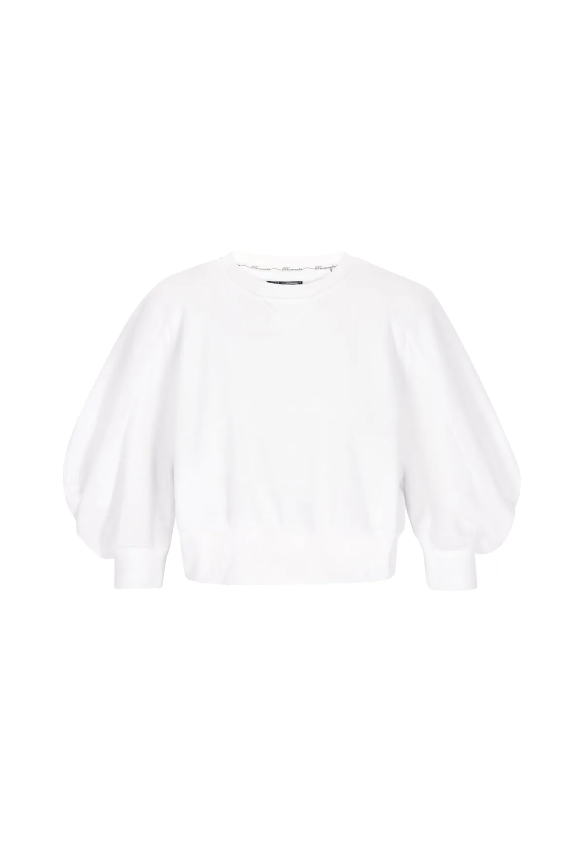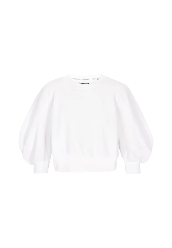 Design: Pofmouwen, Geribd ceintuurtje; Materiaal: Sweatstof; Halstype: Ronde hals; Motief: Effen; Details: Gedrapeerd; Extra's: Voelt zacht aan, Huidvriendelijk materiaal; Pasvorm: Losse pasvorm; Armlengte: Driekwart mouw; Lengte: Korte pasvorm