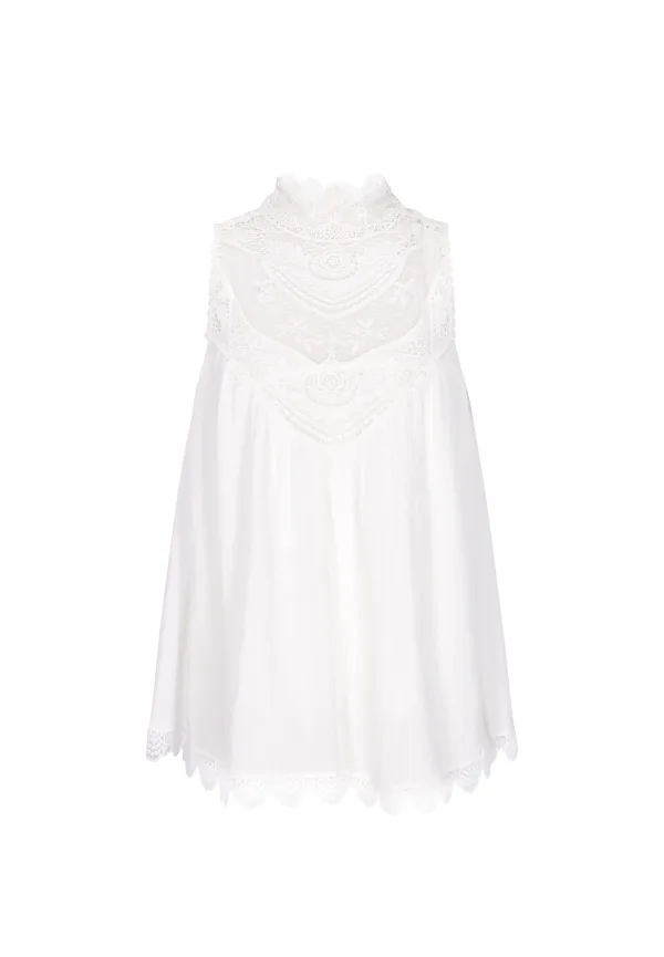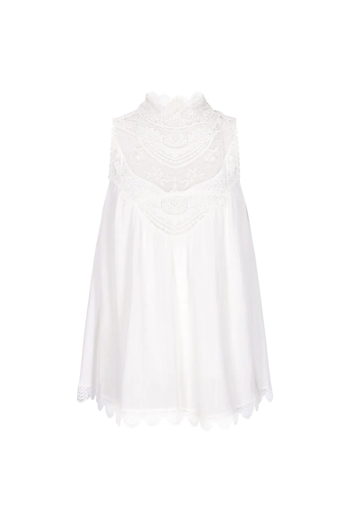 Design: Gevoerde zoom/rand, Rechte zoom; Materiaal: Viscose; Halstype: Opstaande kraag; Motief: Effen; Details: Kant, Plooien; Extra's: Op staal naden, Voelt zacht aan; Pasvorm: Normale pasvorm; Armlengte: Mouwloos; Lengte: Normale lengte