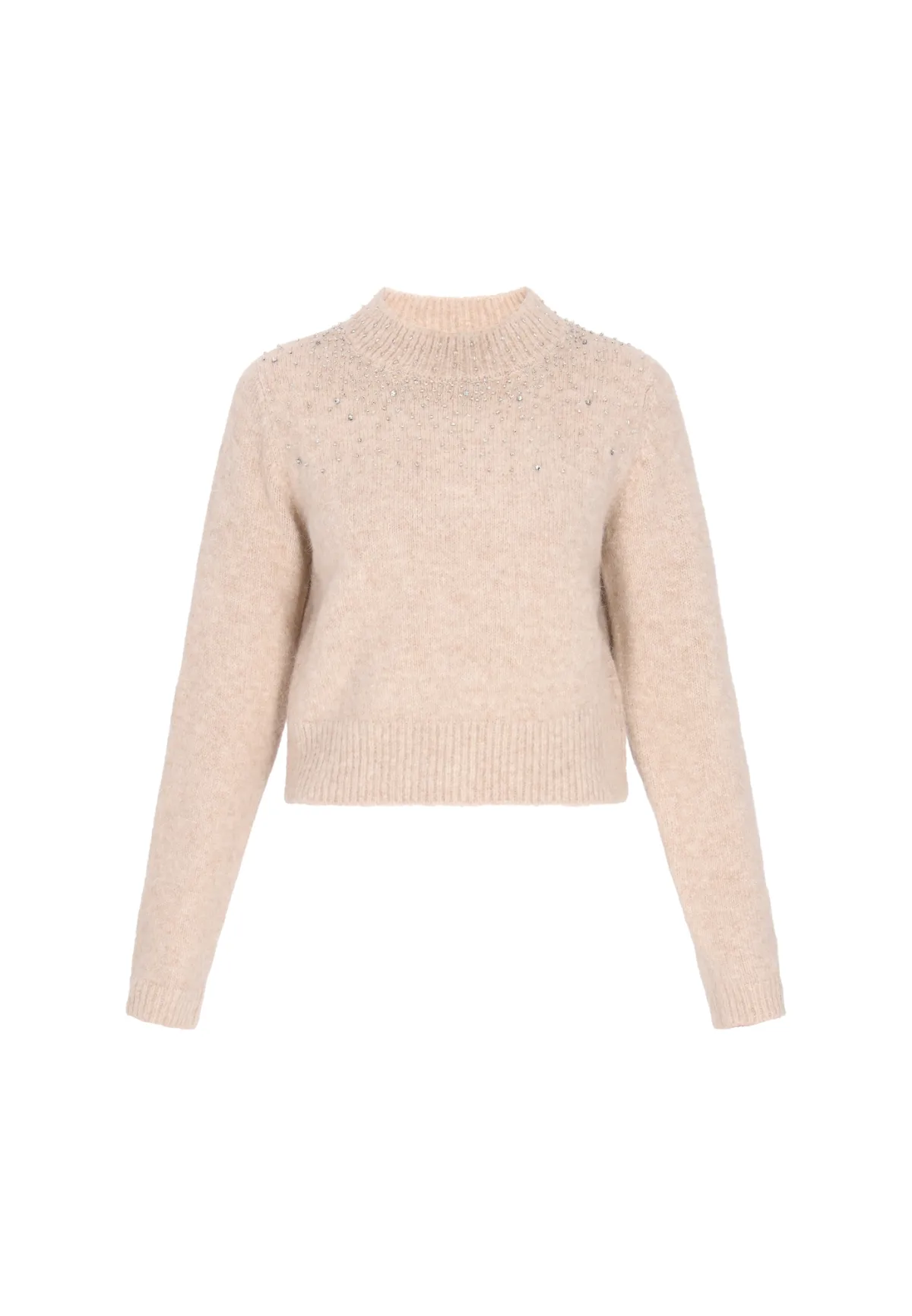 Design: Geribbelde kraag, Extra lange mouwen, Recht model; Type sluiting: Slip; Materiaal: Knitwear; Halstype: Opstaande kraag; Motief: Mélange; Details: Sierstenen; Extra's: Voelt zacht aan; Pasvorm: Normale pasvorm; Armlengte: Lange mouw; Lengte: Normale lengte