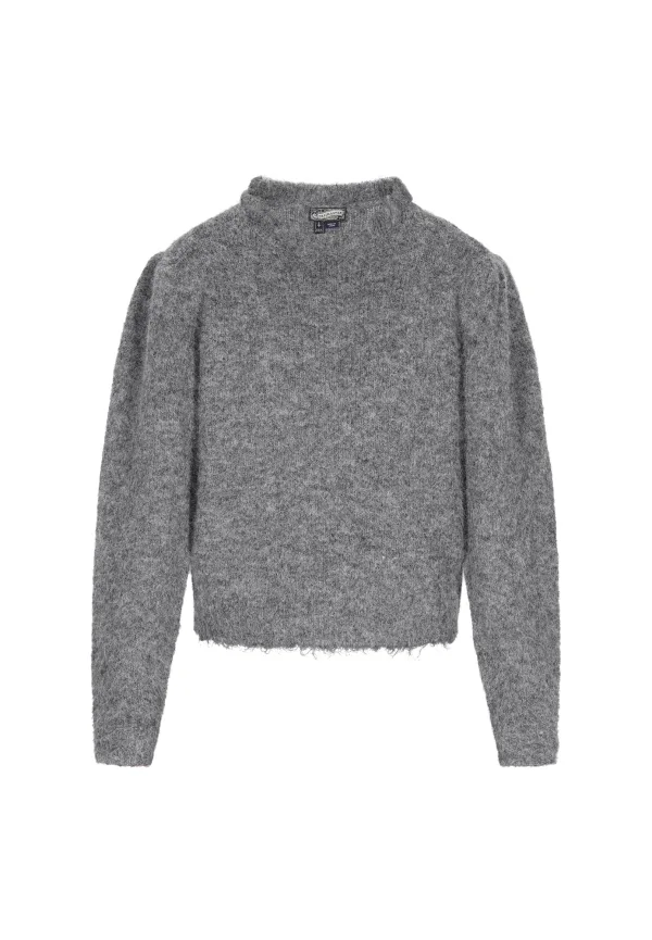 Design: Pofmouwen; Type sluiting: Slip; Materiaal: Knitwear; Halstype: Opstaande kraag; Motief: Mélange; Details: Plooien; Extra's: All-over patroon; Pasvorm: Normale pasvorm; Armlengte: Lange mouw; Lengte: Normale lengte