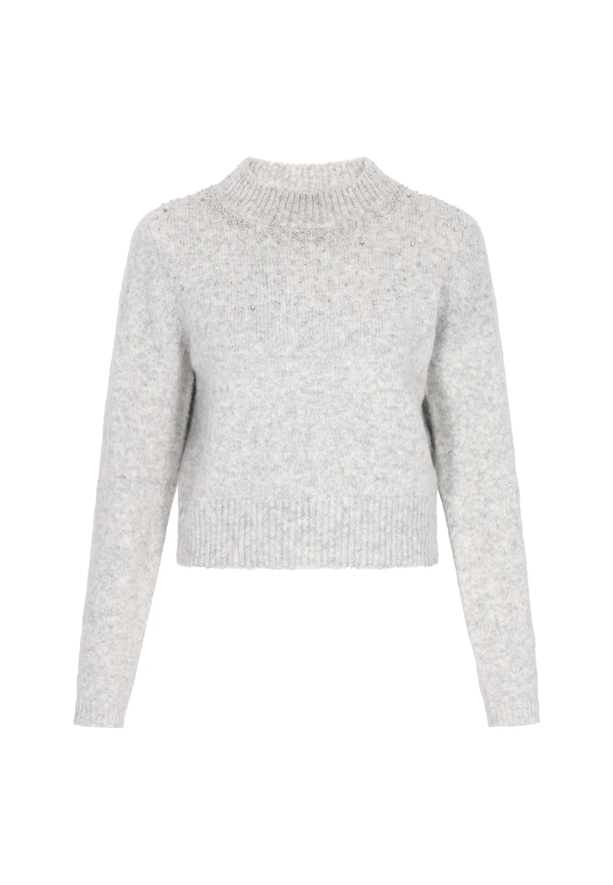 Design: Gevoerde zoom/rand; Type sluiting: Slip; Materiaal: Knitwear; Halstype: Opstaande kraag; Motief: Mélange; Details: Sierstenen; Extra's: Applicaties; Pasvorm: Normale pasvorm; Armlengte: Lange mouw; Lengte: Normale lengte