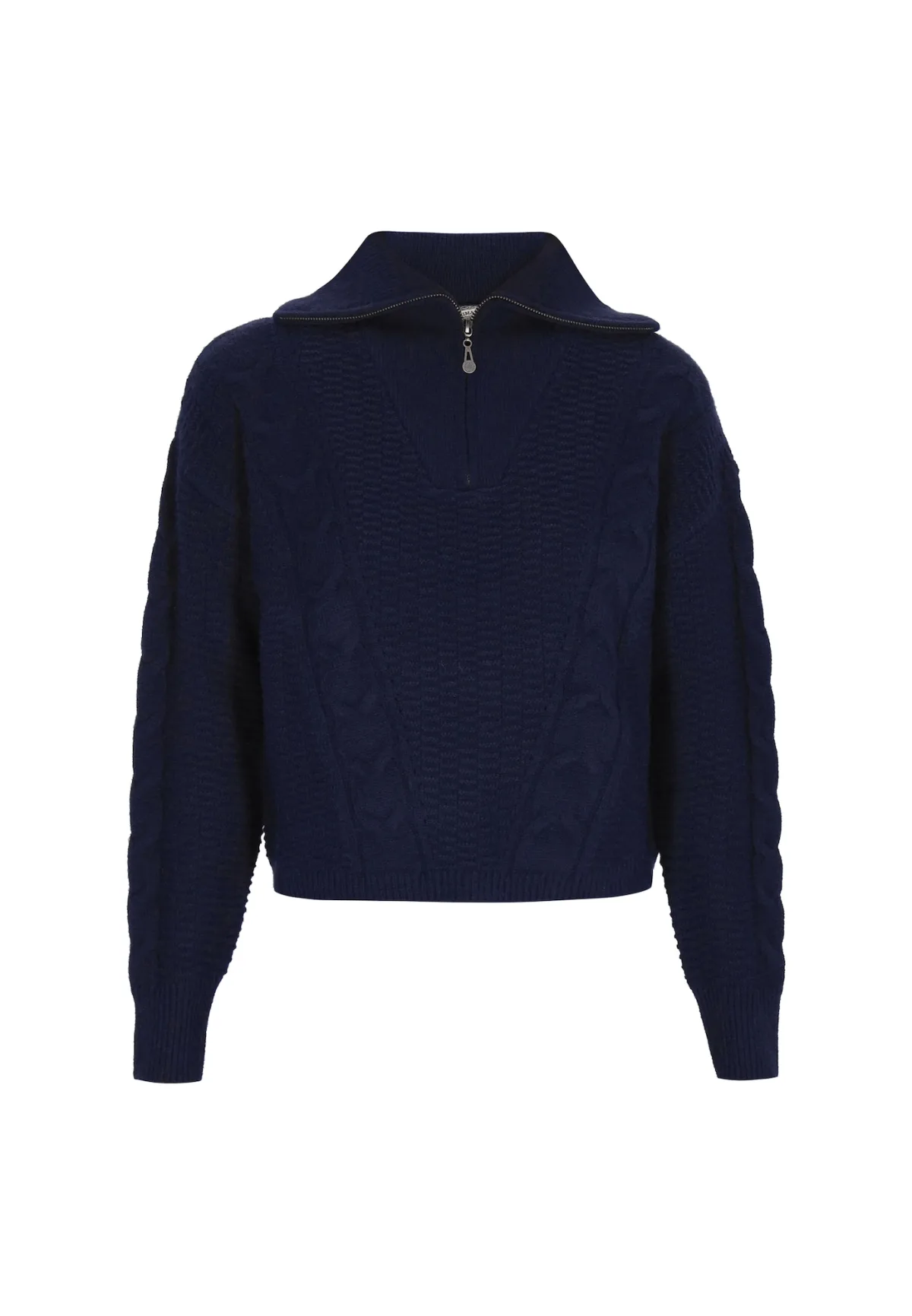 Design: Geribd ceintuurtje; Type sluiting: Ritssluiting; Materiaal: Knitwear; Halstype: Schipperskraag; Motief: Effen; Extra's: Fully fashioned; Pasvorm: Losse pasvorm; Armlengte: Lange mouw; Lengte: Normale lengte