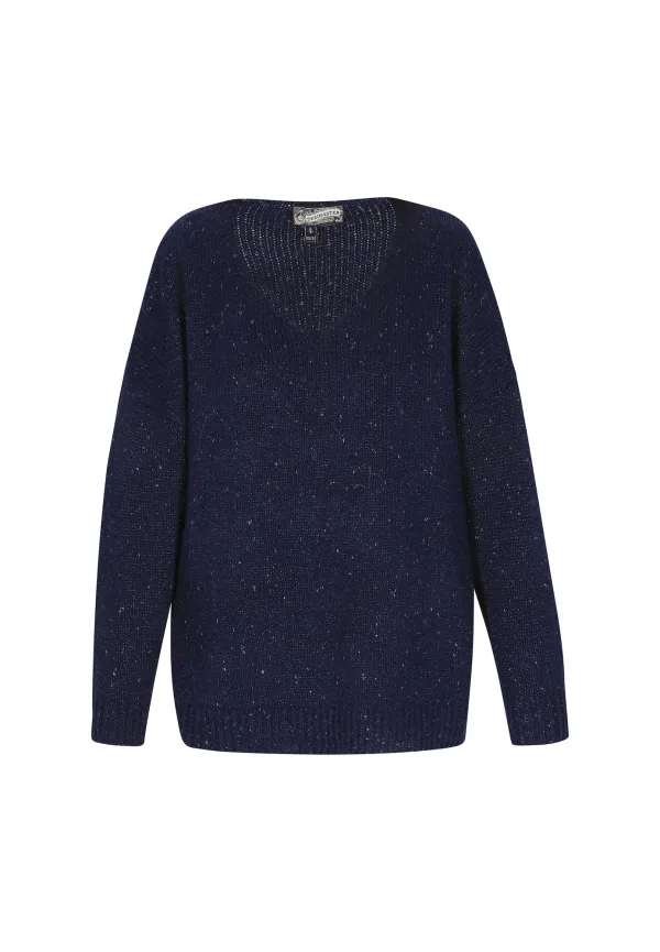 Design: Geribd ceintuurtje, Overcut schouder; Type sluiting: Slip; Materiaal: Knitwear; Halstype: V-hals; Motief: Mélange; Extra's: Fully fashioned, Voelt zacht aan; Pasvorm: Losse pasvorm; Armlengte: Lange mouw; Lengte: Normale lengte