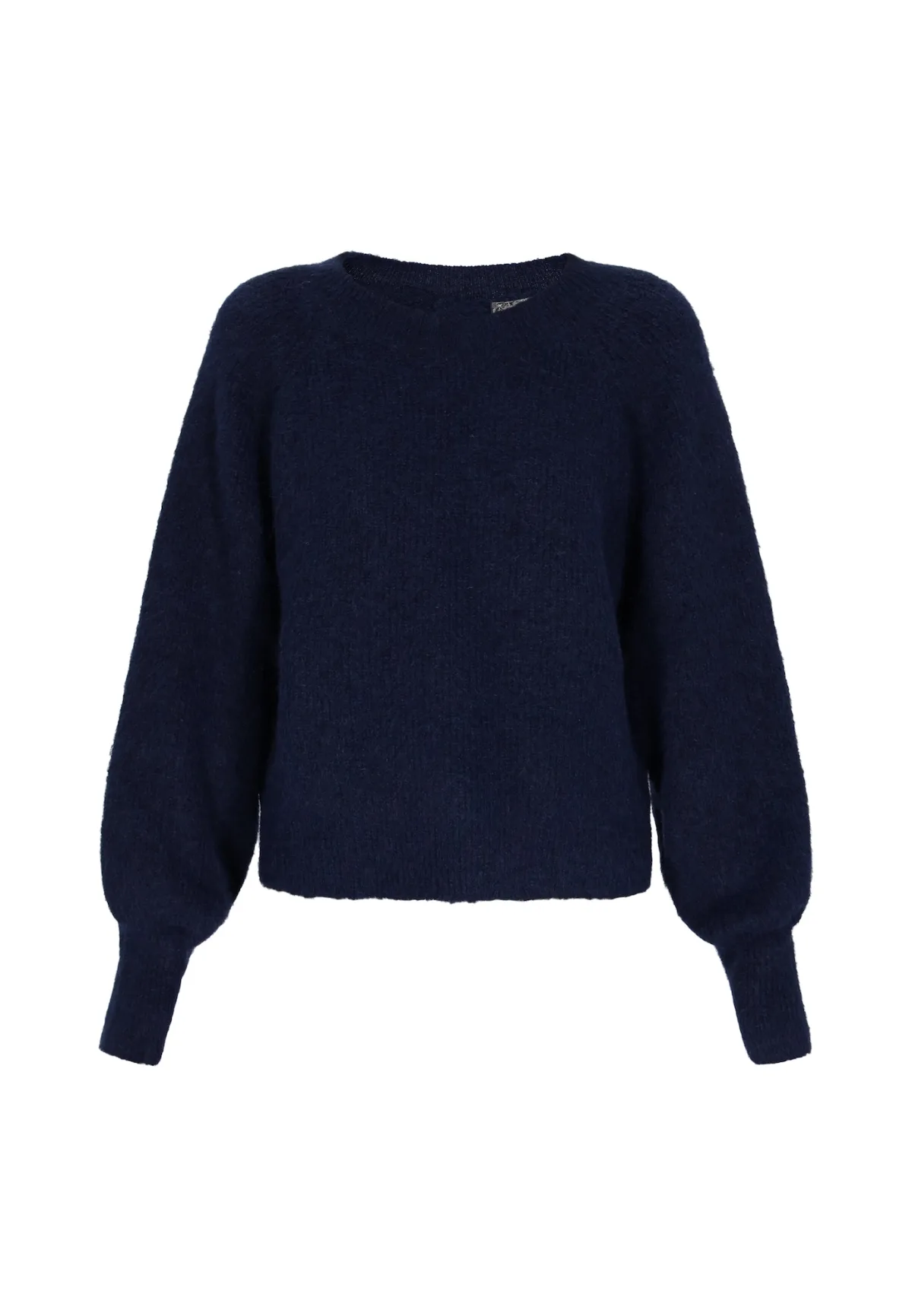 Design: Pofmouwen, Raglanmouwen; Type sluiting: Slip; Materiaal: Knitwear; Halstype: Ronde hals; Motief: Effen; Details: Cut-outs; Extra's: Label patch/label flag, Op staal naden; Pasvorm: Normale pasvorm; Armlengte: Lange mouw; Lengte: Normale lengte