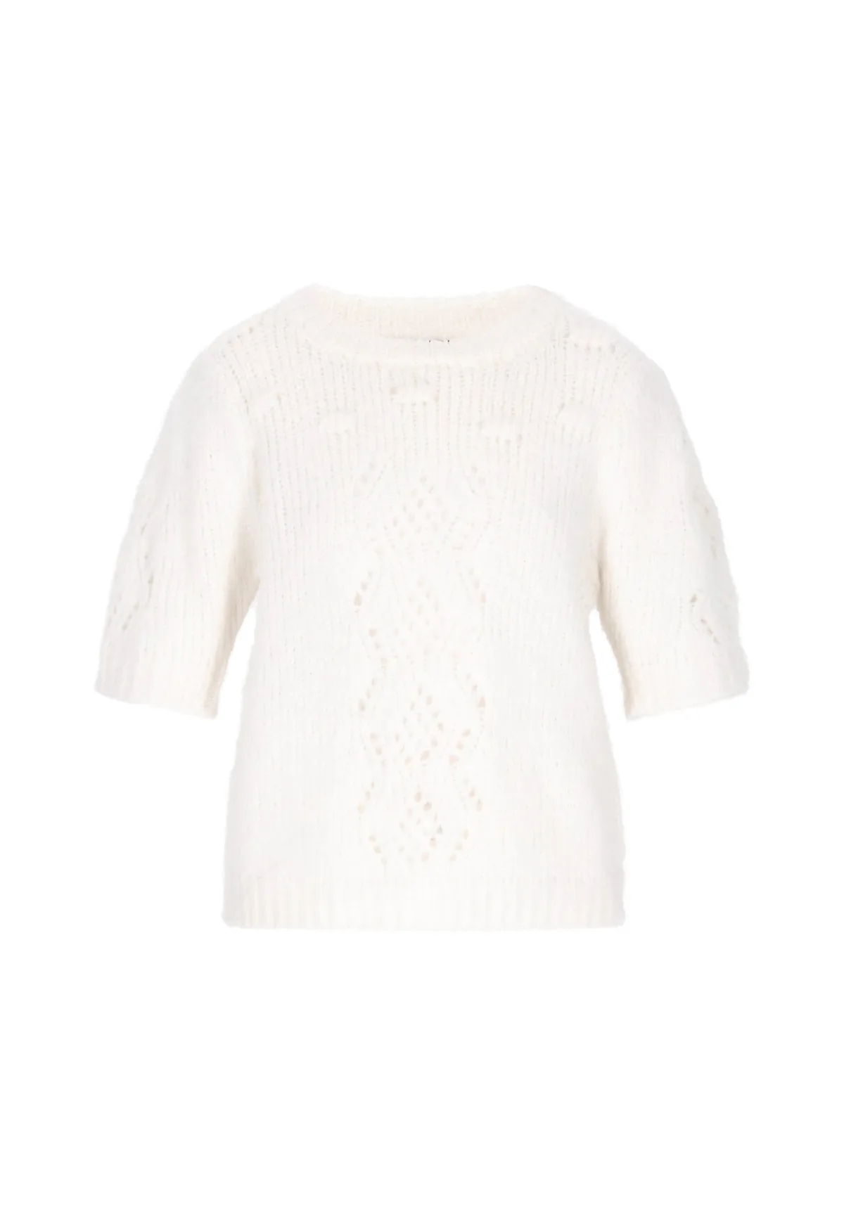 Design: Geribbelde kraag, Geribd ceintuurtje; Materiaal: Knitwear; Halstype: Ronde hals; Motief: Effen; Details: Mesh; Extra's: Fully fashioned; Pasvorm: Losse pasvorm; Armlengte: Halve mouw; Lengte: Normale lengte