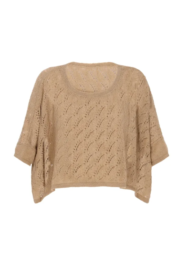 Design: Gesneden mouw; Halstype: Ronde hals; Motief: Effen; Details: Mesh; Extra's: Fully fashioned; Pasvorm: Wijde pasvorm; Armlengte: Driekwart mouw; Lengte: Normale lengte