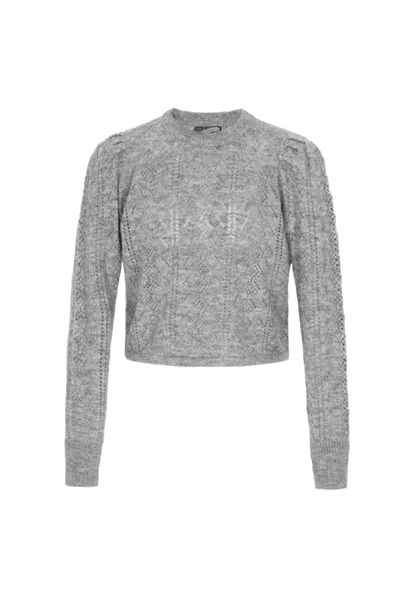 Design: Geribbelde kraag, Pofmouwen, Geribbeld gebreid, Duimopening; Materiaal: Knitwear; Halstype: Ronde hals; Motief: Mélange; Details: Gedrapeerd, Mesh; Extra's: Patroon gebreid, Met textuur, Voelt zacht aan; Pasvorm: Normale pasvorm; Armlengte: Lange mouw; Lengte: Korte pasvorm