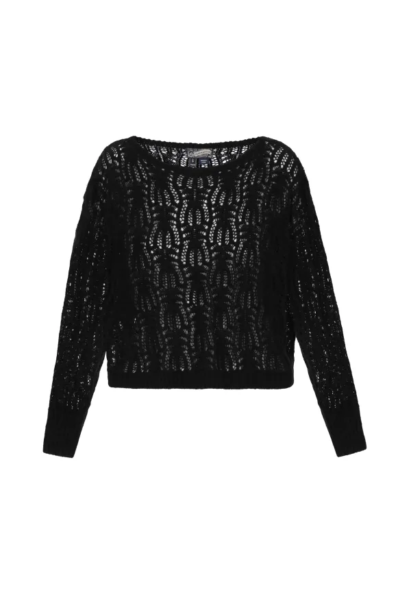 Design: Geribbelde kraag, Raglanmouwen, Brede mouwopeningen; Materiaal: Knitwear; Halstype: Ronde hals; Motief: Effen; Details: Mesh; Extra's: Licht transparant, Patroon gebreid, Met textuur, Voelt zacht aan; Pasvorm: Losse pasvorm; Armlengte: Lange mouw; Lengte: Korte pasvorm