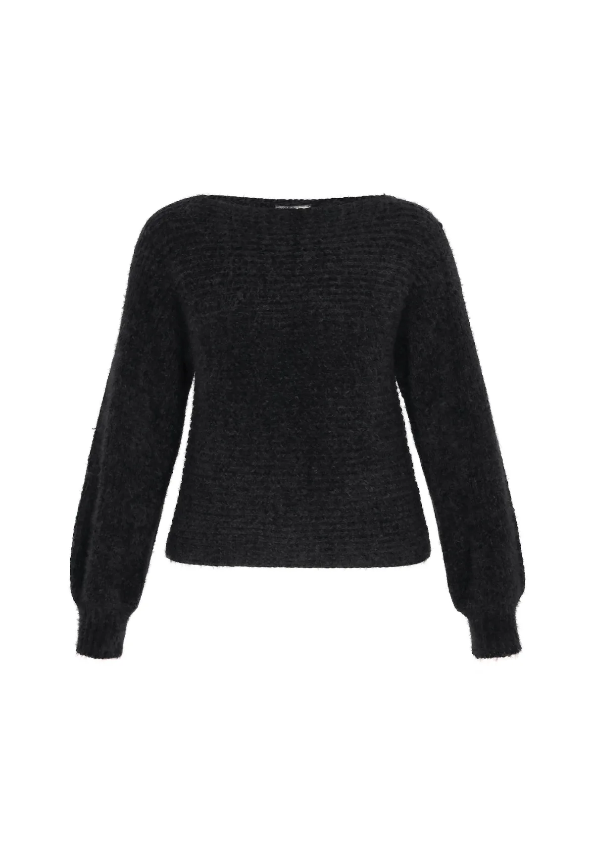 Design: Geribd ceintuurtje; Type sluiting: Slip; Materiaal: Knitwear; Halstype: Boothals; Motief: Mélange; Extra's: Fully fashioned; Pasvorm: Normale pasvorm; Armlengte: Lange mouw; Lengte: Normale lengte