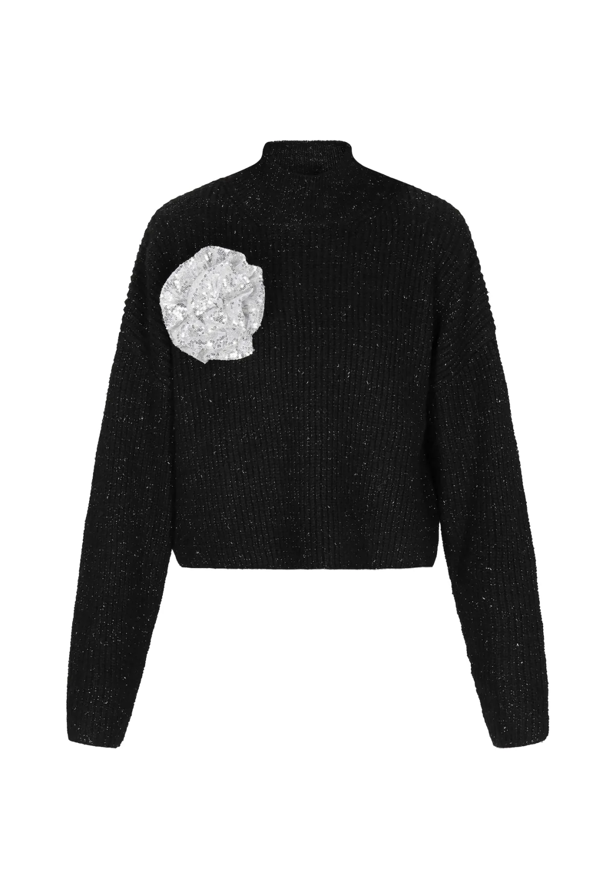 Design: Geribbelde kraag, Geribd ceintuurtje, Elastische inserts; Type sluiting: Slip; Materiaal: Knitwear; Halstype: Col; Motief: Mélange; Details: Pailletten; Extra's: All-over patroon, Voelt zacht aan; Pasvorm: Normale pasvorm; Armlengte: Lange mouw; Lengte: Korte pasvorm
