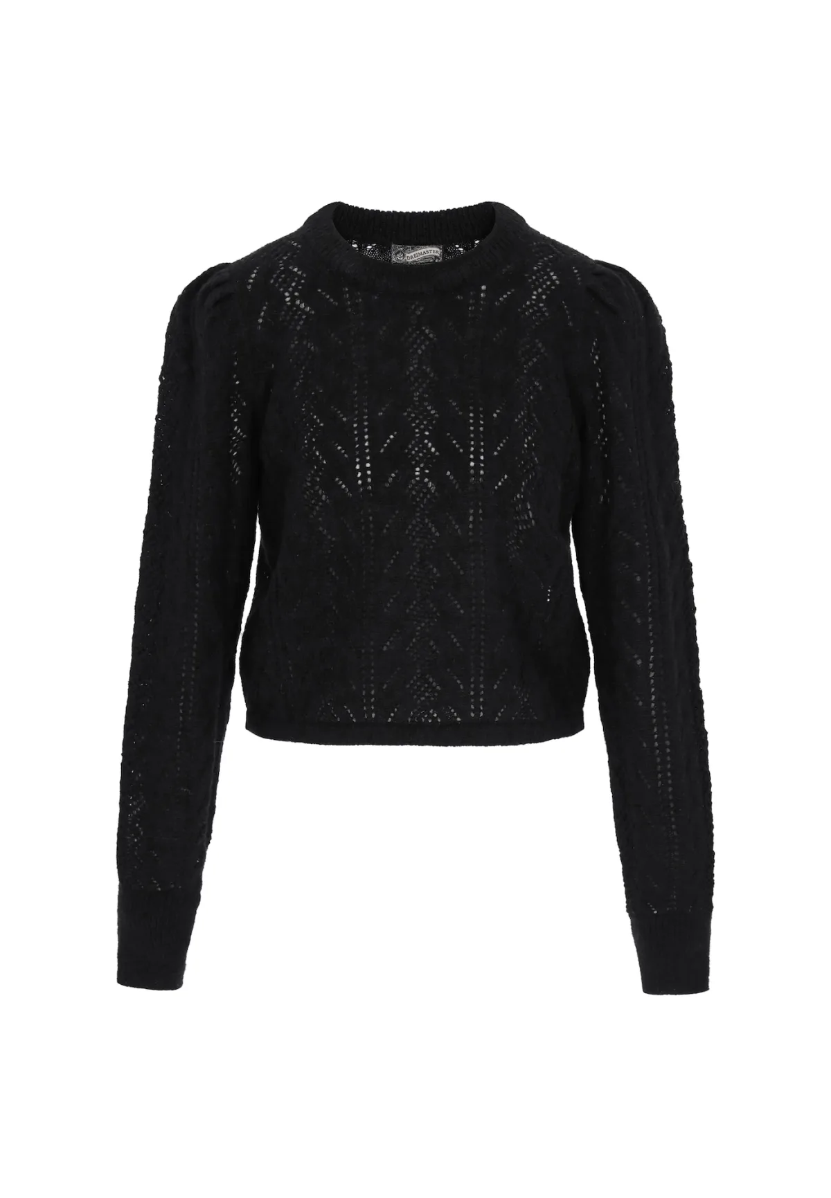 Design: Geribbelde kraag, Duimopening; Materiaal: Knitwear; Halstype: Ronde hals; Motief: Effen; Details: Gedrapeerd, Mesh; Extra's: Label patch/label flag, Met textuur; Pasvorm: Normale pasvorm; Armlengte: Lange mouw; Lengte: Korte pasvorm