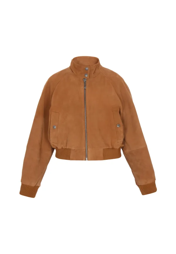 Design: Geribd ceintuurtje, Staande kraag; Type sluiting: Ritssluiting; Type jas: Bomberjack; Voering: Licht gevoerd; Materiaal: Leer; Motief: Effen; Extra's: Stevige stof; Pasvorm: Normale pasvorm