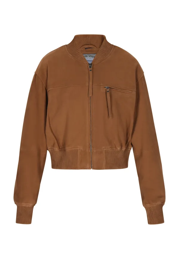 Design: Geribbelde kraag, Geribd ceintuurtje, Overcut schouder, Borstzak; Type sluiting: Ritssluiting; Type jas: Bomberjack; Voering: Licht gevoerd; Materiaal: Leer; Motief: Effen; Extra’s: Op staal naden; Pasvorm: Normale pasvorm