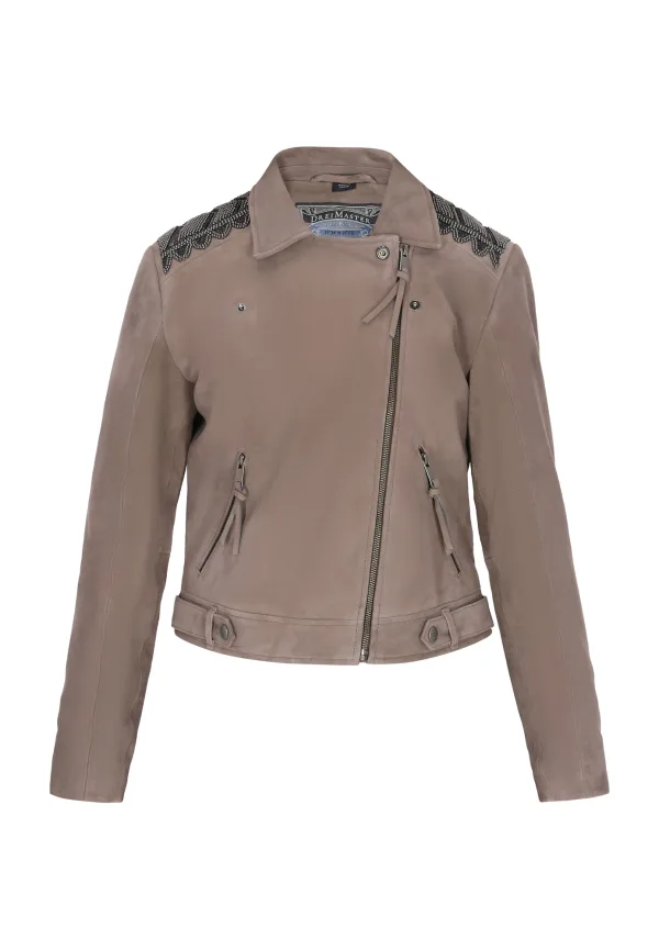 Design: Ritszakken aan de zijkant, Schuine rits; Type sluiting: Ritssluiting; Type jas: Bikerjack; Voering: Licht gevoerd; Materiaal: Leer; Motief: Effen; Extra's: Met halfedelstenen, Stevige stof; Pasvorm: Normale pasvorm