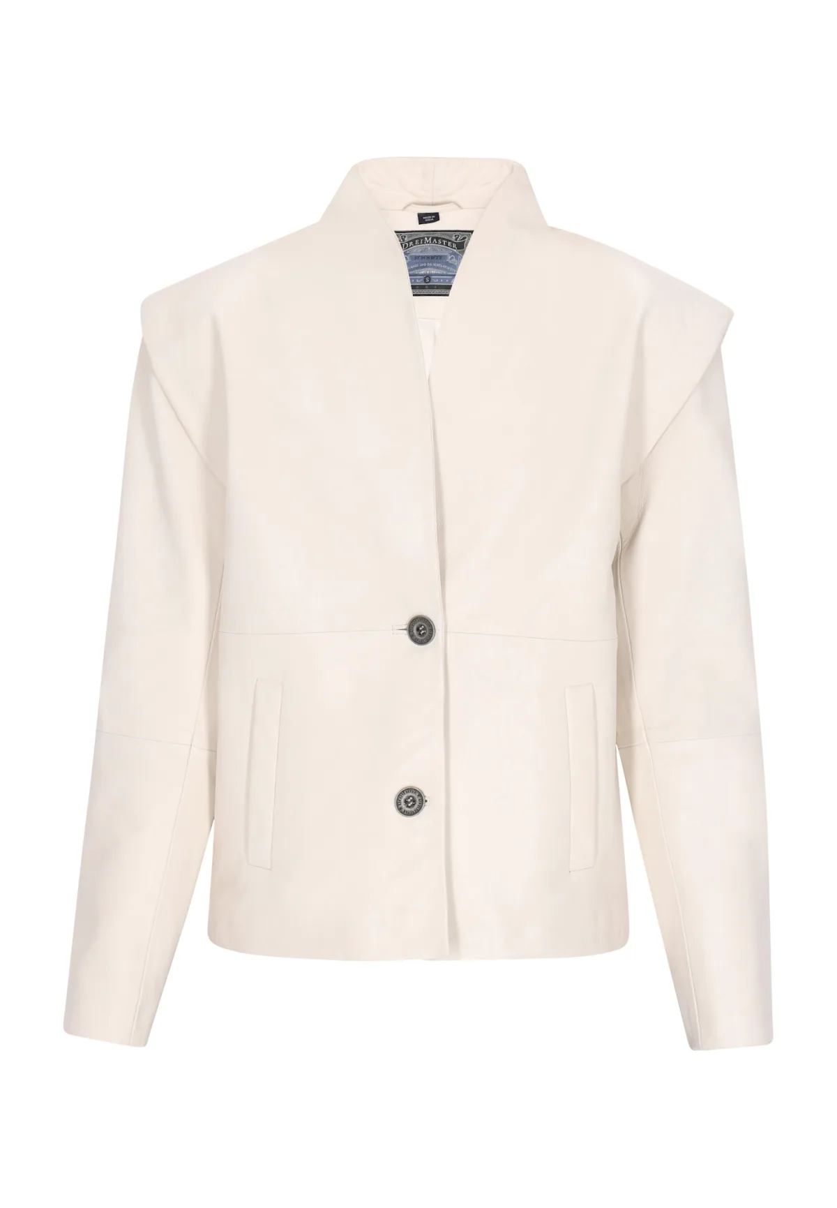 Design: Staande kraag, Zakken aan de zijkant; Type sluiting: Knoopsluiting; Voering: Licht gevoerd; Materiaal: Leer; Motief: Effen; Extra's: Op staal naden, Gladde stof; Pasvorm: Normale pasvorm