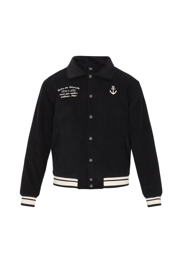 Design: Geribbelde kraag, Zakken aan de zijkant; Type sluiting: Drukknoop; Type jas: College jacket; Voering: Licht gevoerd; Materiaal: Corduroy; Motief: Tekst print; Extra's: Met textuur; Pasvorm: Normale pasvorm