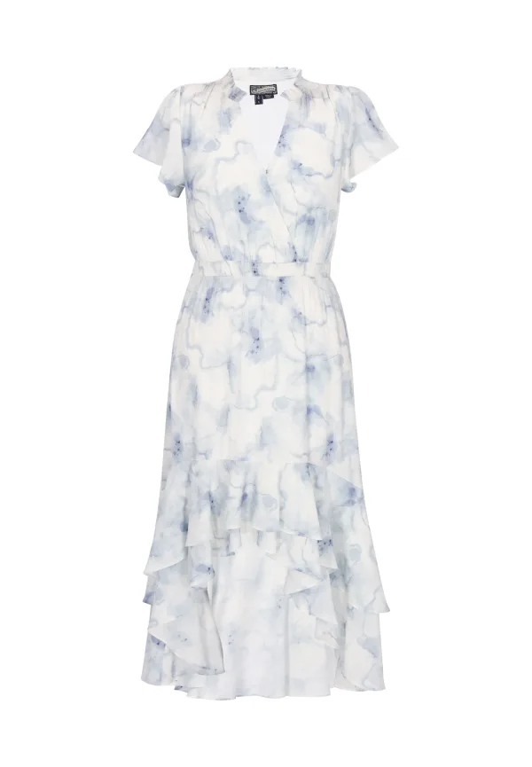 Design: Gevoerde zoom/rand; Type sluiting: Slip; Materiaal: Katoen; Halstype: Wikkeltop; Details: Ruches, Volant, Gedrapeerd; Extra's: All-over patroon; Lengte: 7/8 lengte; Snit: Getailleerd; Pasvorm: Normale pasvorm; Armlengte: Kwartmouw