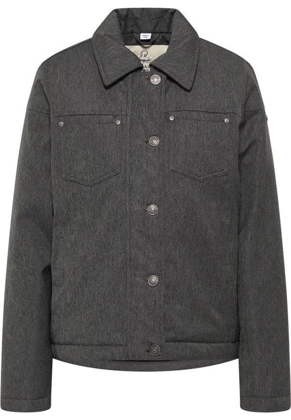 Een winterjas met een casual denim look? DreiMaster Vintage laat zien hoe het moet en presenteert een jas die niet alleen indruk maakt met zijn coole denim look, maar ook met zijn weerbestendigheid dankzij een hoogwaardige coating. Comfortabele warmte wordt geboden door vulling en een zachte fleece voering. Het ontwerp wordt visueel aangevuld door de kraag, de siernaden en de twee borstzakken met klinknagels en de verlengde en afgeronde achterkant. Twee zijzakken met drukknopen en verwarmende fleecevoering verwennen koude handen. De jas wordt gesloten met een rits met kinbescherming en een doorlopende knoopsluiting. De binnenkant heeft een binnenzak met drukknoop en praktische schouderbanden waarmee de jas nonchalant kan worden gedragen. winterjas