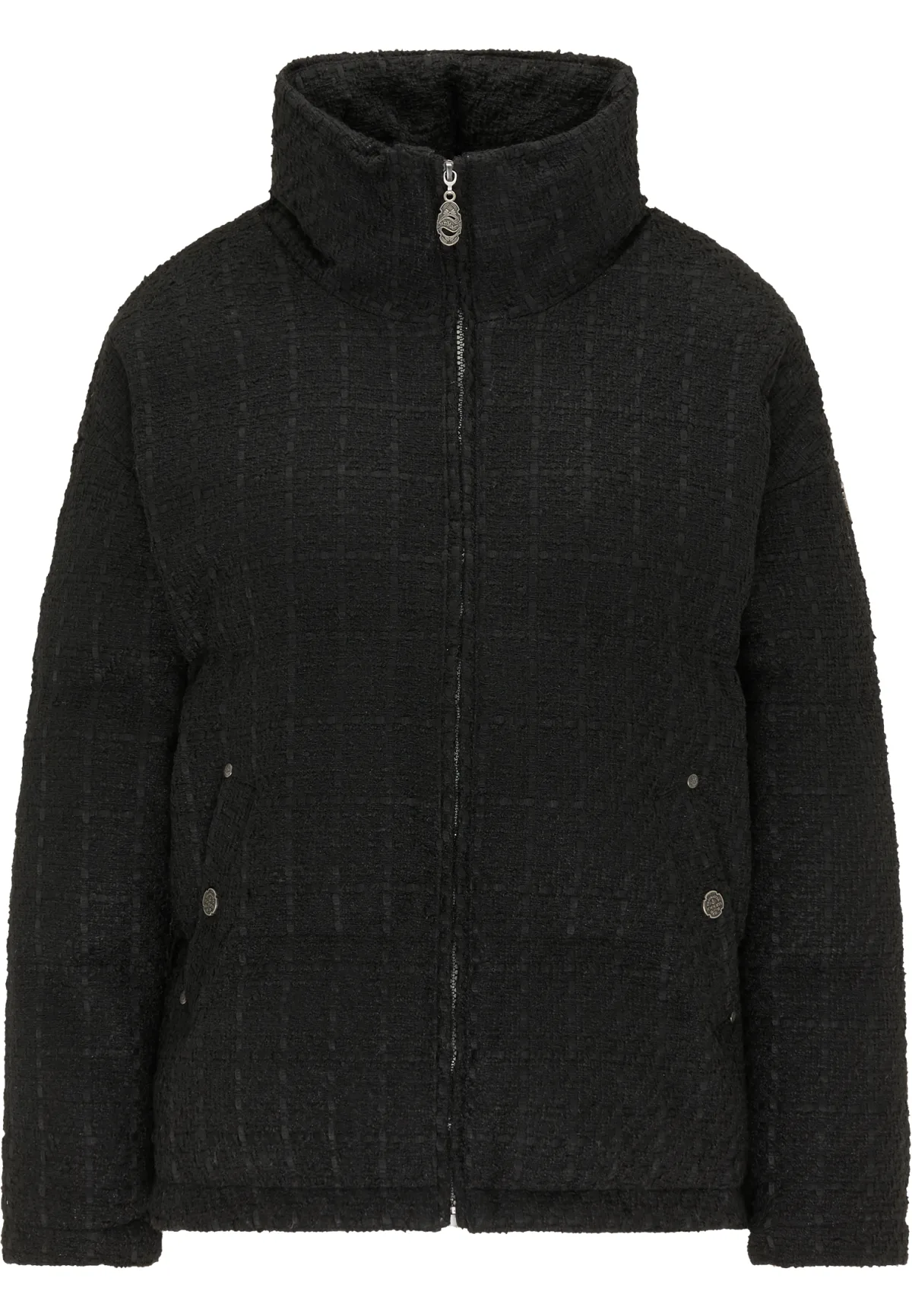Dit bijzonder aantrekkelijke jasje van DreiMaster Vintage overtuigt door zijn boucléstructuur en opvallend design. De losse snit zorgt voor een perfecte pasvorm. Dit stijlvolle bouclé jasje heeft een opstaande kraag en twee zijzakken en staat stijlvol op zowel jeans als nette pantalons, waardoor hij geschikt is voor veel verschillende gelegenheden. winterjas