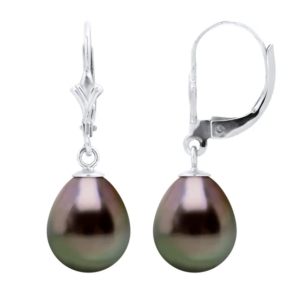 True Dangle Oorbellen gekweekte parels van Tahiti Peren 9-10 mm - Kwaliteit A + -System Chip - White Gold 375 duizendste - 2 jaar garantie op fabricagefouten - Geleverd in hun presentatie geval met een certificaat van echtheid en Garantiefonds voor de internationale - Al onze juwelen zijn gemaakt in Frankrijk.