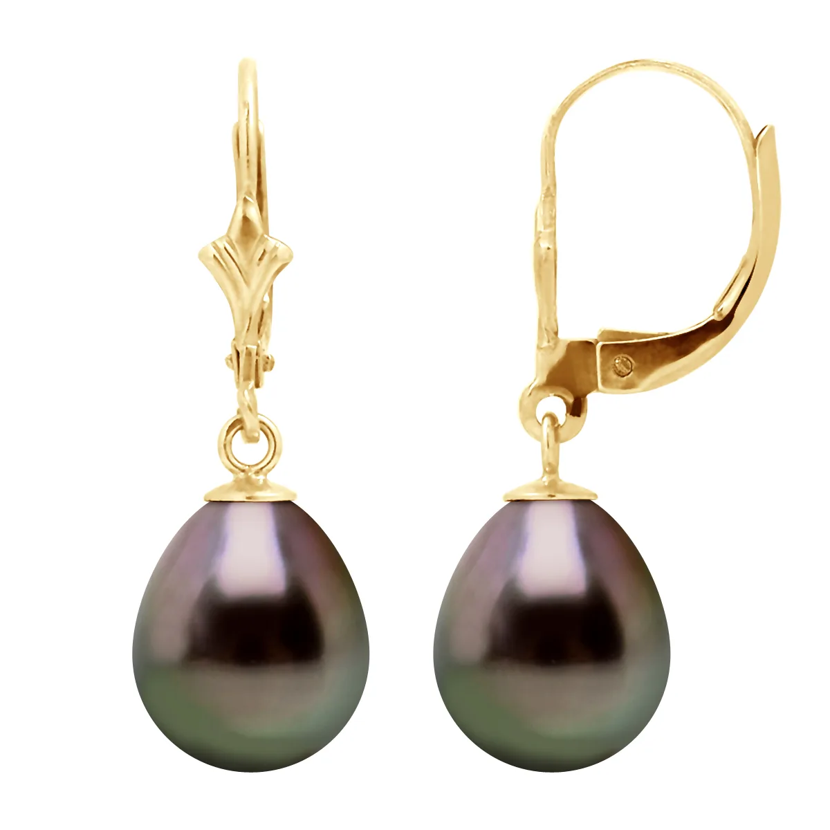 True Dangle Oorbellen gekweekte parels van Tahiti Peren 9-10 mm - Kwaliteit A + -System Chip - Yellow Gold 375 duizendste - 2 jaar garantie op fabricagefouten - Geleverd in hun presentatie geval met een certificaat van echtheid en Garantiefonds voor de internationale - Al onze juwelen zijn gemaakt in Frankrijk.