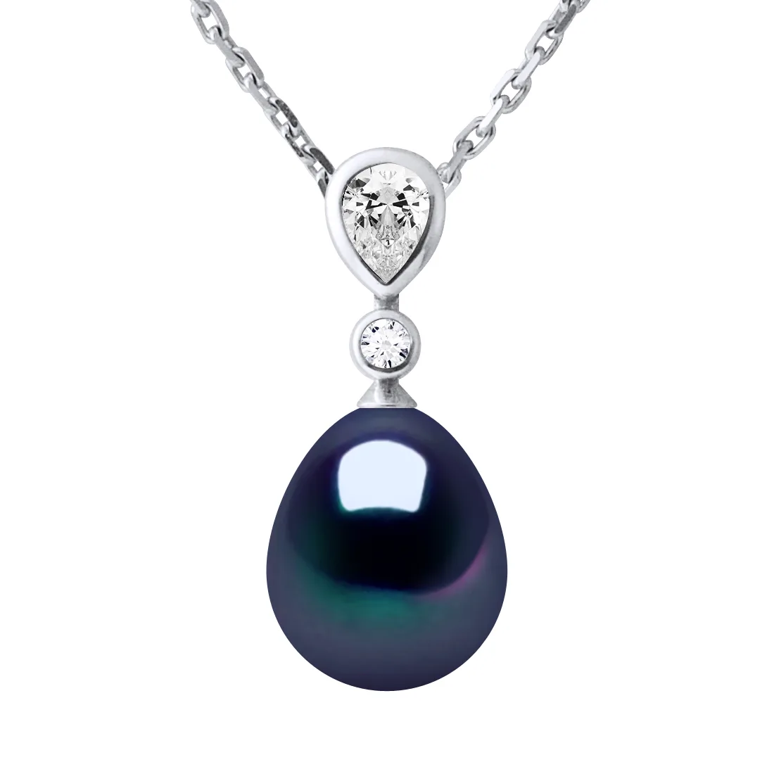 Ketting - Water Pearl verse peer 9-10 mm - Solitaire Oxide Zircomium - Knitwear veroordeelde - 925 duizendste rhodium - Lengte: 42 cm - Wordt geleverd in een koffer met een certificaat van echtheid en een internationale garantie - Onze sieraden is vervaardigd in Frankrijk.