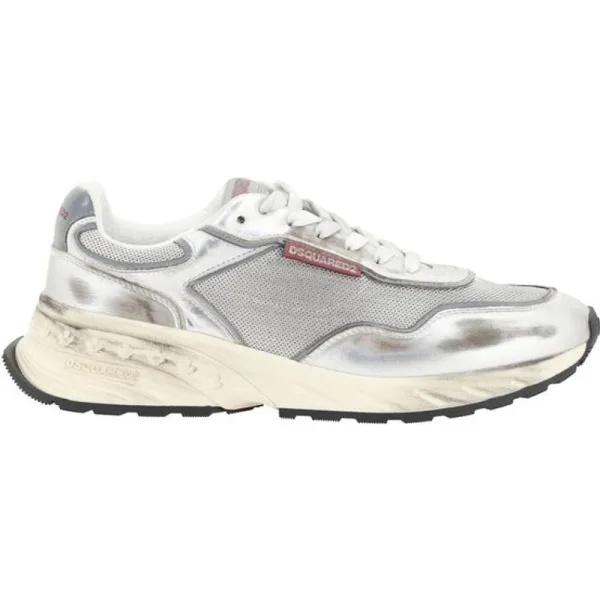 De Sprinter Sneakers van Dsquared2 combineren gedurfd ontwerp en retro stijl met een moderne twist. De bovenste vetersluiting zorgt voor een veilige pasvorm, terwijl het gepaneelde ontwerp met een versleten vintage-effect een onmiskenbare uitstraling vol karakter biedt. De textuur van de zool biedt comfort en ondersteuning, wat het sportieve ontwerp aanvult. Het iconische logo van het merk is op de zijkant aangebracht op een label, terwijl het Dsquared2-monogram op de achterkant is gedrukt. Seizoen: SS26 Samenstelling: BOVENSTE 50% Kalfsleer Bos Taurus 50% Stof ZOOL 100% Rubber