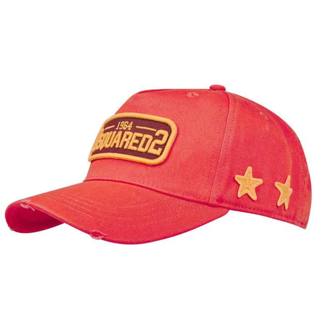 DSQUARED2 1964 geborduurde rode pet. DSQUARED2 1964 geborduurde rode hoed. 100% katoen, sterdetail aan de zijkant. Dsquared2 baseballpet. Stijlcode: BCM0518 05C00001 5096. Geborduurd in Canada op de achterkant