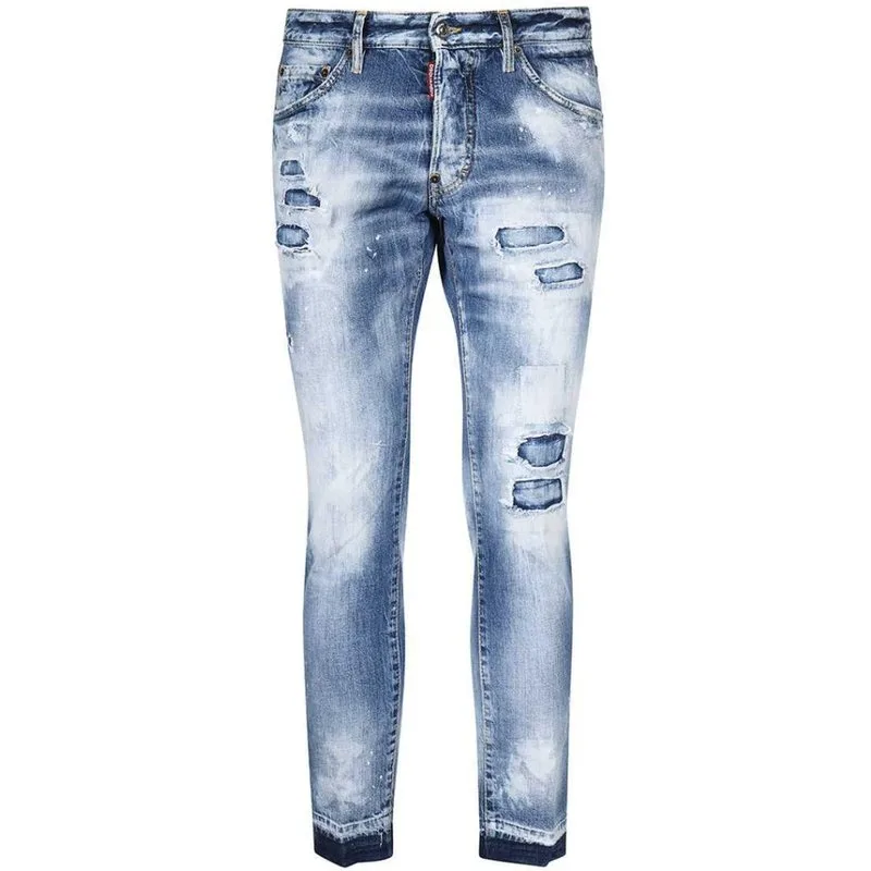 Verrijk je casual garderobe met de Dsquared2 Cool Guy Cropped Blue Denim Pants. Deze marineblauwe jeans, gemaakt van 100% premium katoen, bieden een comfortabele, ademende pasvorm, ideaal voor dagelijks gebruik. Het cropped design voegt een moderne touch toe, perfect om je favoriete schoenen te showen en tegelijkertijd een strak silhouet te behouden. Deze jeans zijn duurzaam en stijlvol en combineren klassiek vakmanschap met een eigentijdse flair, waardoor ze een veelzijdige aanvulling zijn op de collectie van elke man. Of je nu formeel of casual gekleed bent, ervaar de perfecte mix van comfort en trendsettende stijl met deze opvallende denim broek