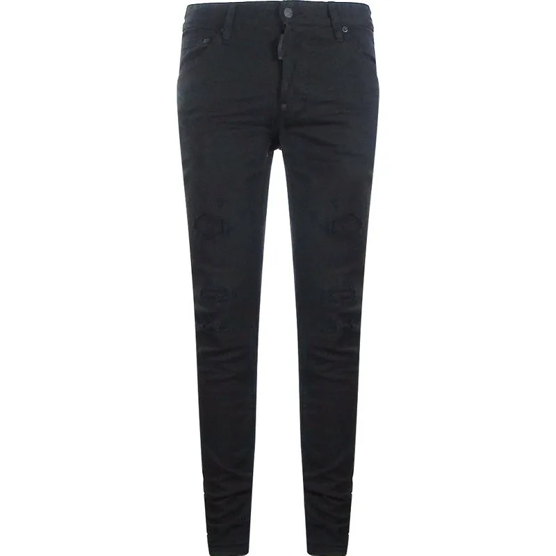 De DSQUARED2 Cool Guy Jean in het zwart combineert stijl en duurzaamheid met verstevigde scheuren die je look een stoere twist geven. Deze jeans is gemaakt van 98% katoen en 2% elastaan en biedt een comfortabele pasvorm met precies de juiste hoeveelheid stretch voor bewegingsvrijheid. Perfect voor mannen die op zoek zijn naar een moderne, stoere look zonder in te leveren op comfort. Deze jeans zijn veelzijdig genoeg voor casual uitjes of om een statement te maken in een stedelijke omgeving. Verrijk je garderobe met dit iconische item dat eigentijdse mode combineert met praktische draagbaarheid